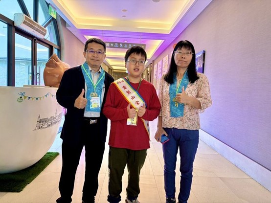靈鷲山今辦全國普仁獎頒獎典禮,圖為得獎者台南市宅港國小學生周君憲(中),與校長林維智(左)和教導主任陳美惠(右)合照。圖/靈鷲山佛教教團提供