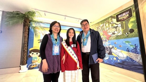 靈鷲山今辦全國普仁獎頒獎典禮,圖為得獎的桃園市百吉國小學生林菡萱(中),與校長王連進(右)和導師陳春美(左)合照。圖/靈鷲山佛教教團提供